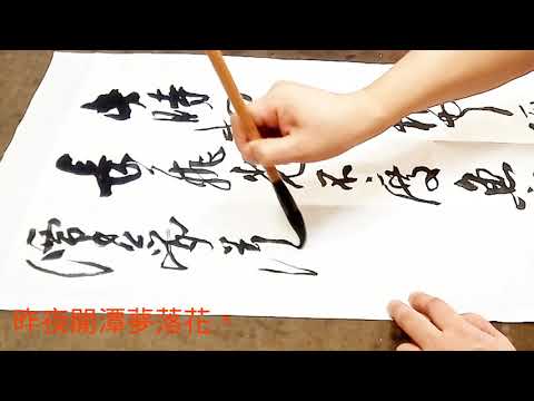 行草書王昌齡西宮春怨-西宮夜靜百花香,欲卷珠簾春恨長。斜抱雲和深見月,朦朧樹色隱昭陽。吳啟禎書法教室教學...
